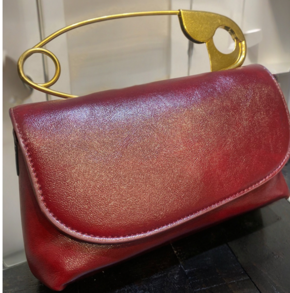 Turn heads with The Pin-Up Clutch — a bold 6-inch statement bag featuring a vintage-inspired silhouette, zipper pocket, luxe vegan leather, shoulder bag and a unique safety pin handle. Chic, edgy, and made to stand out. Limited time only at MellRose.