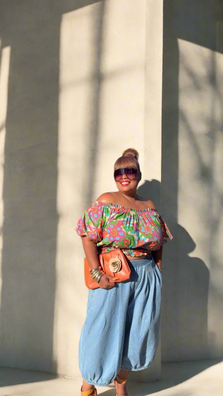 These wide-leg Capri jeans are the ultimate blend of chic and relaxed. Featuring a flattering cropped length, roomy side pockets, and a comfortable elastic waistband, they offer a perfect fit for any body type. The wide-leg silhouette gives you freedom of movement and a trendy edge, making them easy to dress up with heels or down with sneakers can be worn all seasons. Ideal for casual outings, vacation looks, or weekend vibes—these jeans are a must-have staple for your wardrobe. Great Quality.
